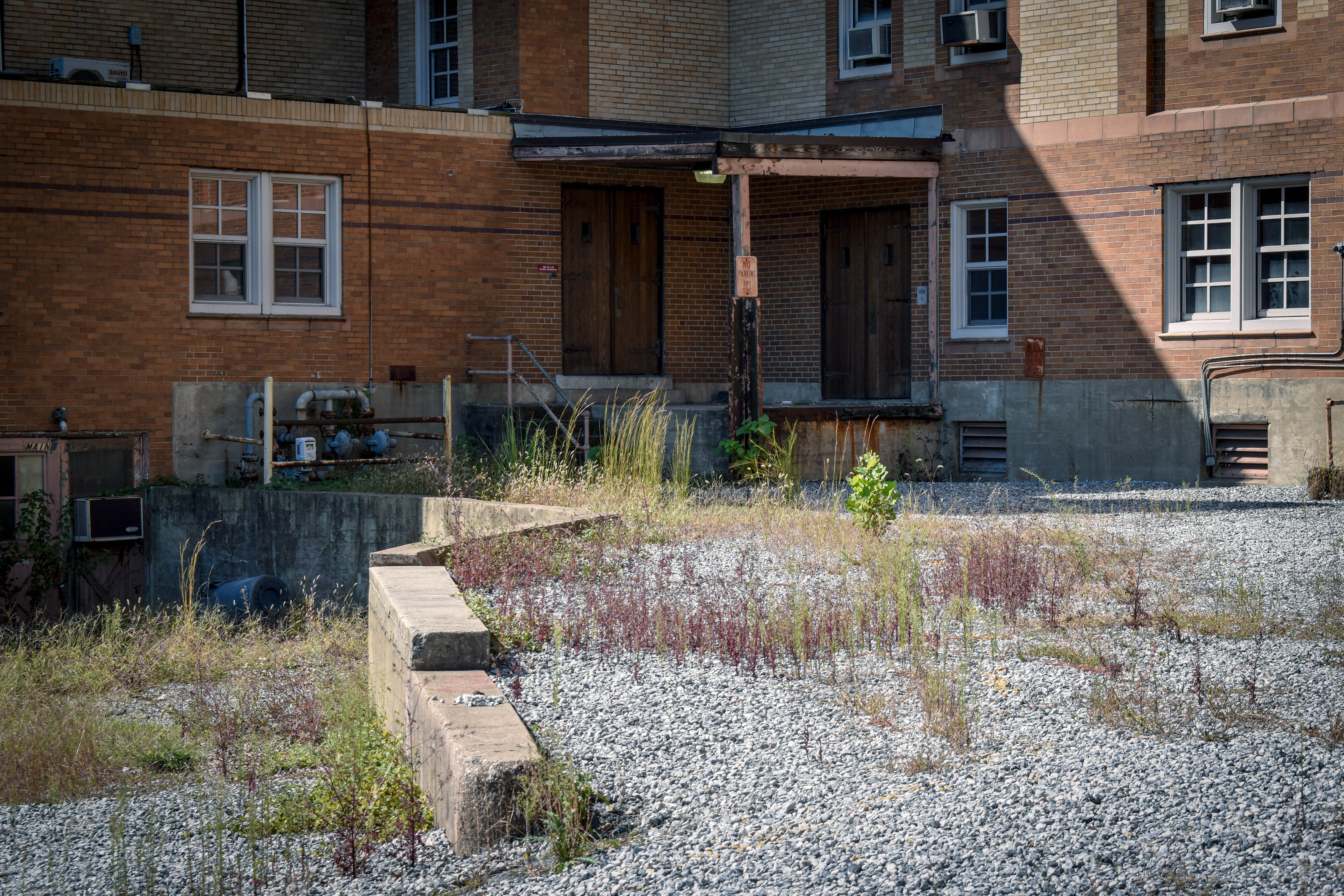 There is a stairwell in the back of the building on its Eastern side that descends into the basement. Peering into the chipped windows of the East wing, I can see that ground level and below is full of ductwork, pipes and boilers. It was probably the heating and cooling system for the whole building, now dormant; I assume that rats and spiders make their home there now, in the unregulated cool of the cement basement. The stairwell is coated in brown and rotting leaves and the broken green glass of beer bottles. We come today to pilfer a treasure I noticed months ago at the foot of the stairs: Several abandoned stacks of plastic nursery pots, worth not much at all, but probably fifty or so of them—the kind of thing that is indispensable for growing baby plants from seed and into a useable size. It is September; I’ve had my eye on these pots for months, knowing that come the end of summer I will be sprouting little kale and broccoli plants to feed us through autumn. I descend the rotting concrete stairs delicately, accompanied by the dry rustling of leaves and the clink of glass underfoot. Jon watches on nervously, knowing my talent for clumsiness, and scanning the grounds all around us. There is nobody here. We are both nervous about taking something abandoned from the Seminary. We know that people don’t belong here, and if they did they wouldn’t be us. Who owns these grounds? Who keeps the electricity humming through the floodlights at all the entrances? Who left these flowerpots here, collecting spiders and broken glass?